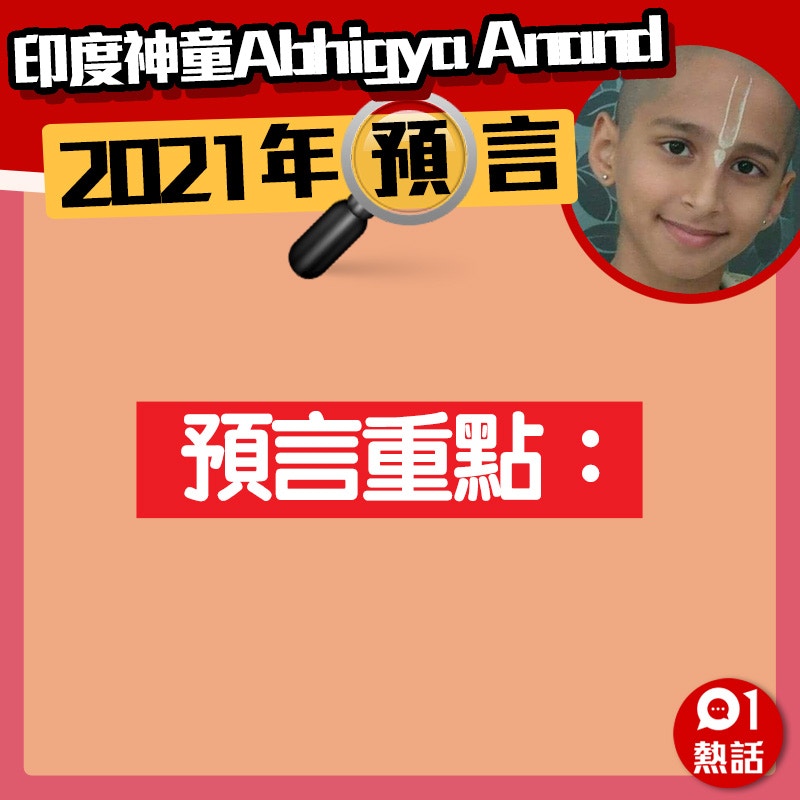 å°åº¦ç¥ç«¥é è¨å¤±æ çè²¡æ¿ Dcard from fbthumb.dcard.tw 年仅14岁的少年 阿南德 (abhigya anand),是印度知名天才占星师,他去(2019)年曾 预言 ,人类自11月开始会遭遇重大 灾祸 ,并至今年3、4月达到高峰,时间与新冠肺炎疫情吻合,令许多人惊讶。. 印度神童最新预言疫情第3高峰在9月。(图片来源:adobe stock) 新冠肺炎仍在全球肆虐,印度出现了超级变种病毒疫情失控,当地连续7天单日确诊人数逾30万,印度官方4月30日公布的数据显示,在过去24小时里、单日新增确诊人数37万9257宗,为全球最高。 印度神童阿南德(abhigya anand)的最新预言. 巴巴·万加的支持者表示,她的预言准确度为80%,她的预言中也有不少失败例子和令人质疑的地方。 中印 若开战 时间点将在12月 另一位是 印度 男孩阿比吉亚.阿南德。 印度男孩阿比吉亚阿南德 曾经在油管上预言中了很多2020年的重大事件 因此,印度男孩在油管和各种社交网络上爆红 但是就在他爆红的时候 印度男孩却突然从油管上消失了 已经有一个多月的时间印度男孩 再也没有放出任何新的预言 这个视频我们来回顾一下印度男孩曾经预言中什么大事?